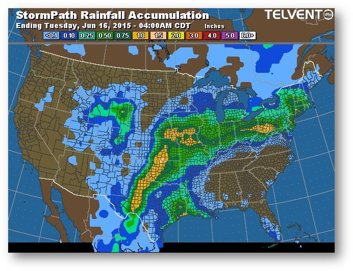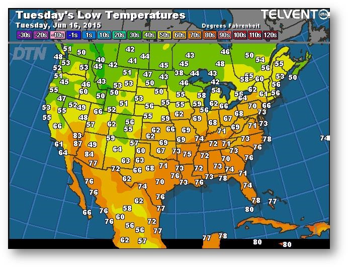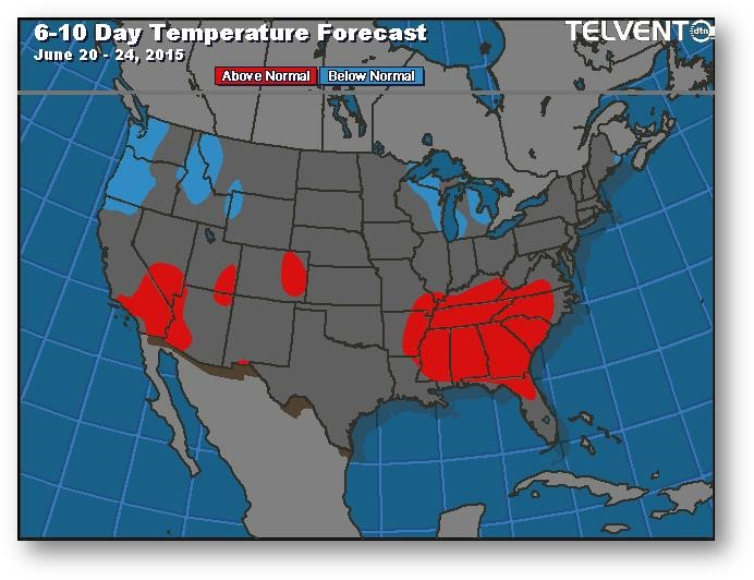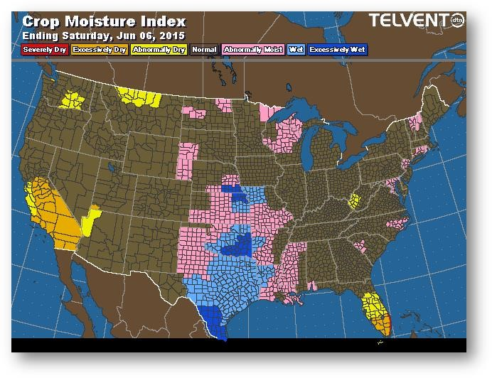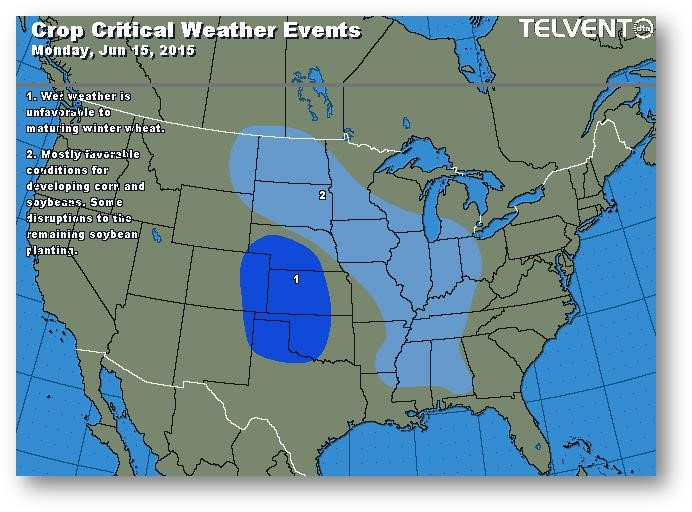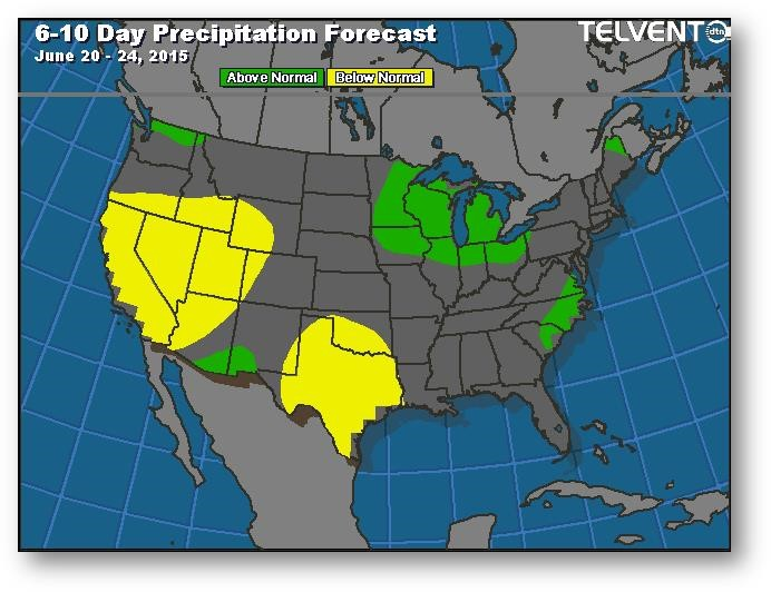 Le marché du maïs indique clairement que les fortes précipitations sont les bienvenues et que les inquiétudes relatives à de possibles vagues de chaleur en juillet s'évanouissent. Le rapport COT de vendredi a causé une surprise en révélant le nombre de contrats que les fonds avaient couverts. Ceux qui croient à une hausse du prix du maïs se fient à la composition du marché et à la position considérablement courte tôt en saison de croissance, mais cet argument tient difficilement la route depuis la publication du rapport COT vendredi dernier. La situation en Chine est extrêmement négative en ce qui a trait à la demande de maïs en alimentation animale, de semoule et de drêche puisqu'on annonce qu'on pourrait avoir recours à des subventions pour inciter les utilisateurs finaux à piger dans les stocks et ainsi diminuer les importations. On s'attend à ce que l'évaluation de l'état des cultures reste sensiblement la même après la clôture.