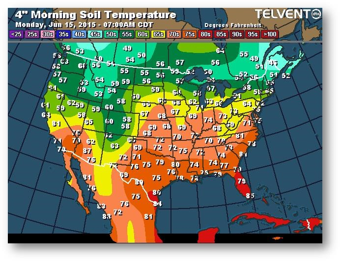 Température du sol en matinée à une profondeur de 4 pouces (degrés Farenheit)
