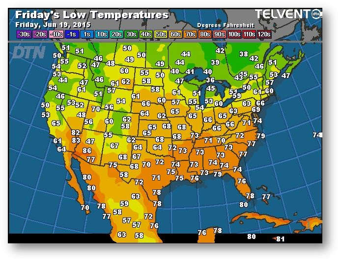 La production d'éthanol a été la principale nouvelle hier; elle a légèrement reculé alors que les stocks ont augmenté d'environ 2%. Des précipitations sont toujours prévues; le sud-centre et le sud-est profiteront de temps chaud. Il semble que le marché du maïs suivra celui du soja. Vendredi, Informa publiera son évaluation de la superficie, qui était de 88,7 millions d'acres en mai (USDA 89,2). Les prix devraient rester neutres d'ici le 30 juin.