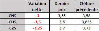 Évolution du prix calculé en fonction du rapport 201 du CME : baisse prévue de