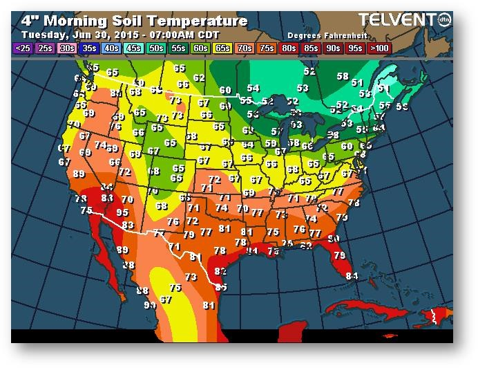 Température du sol en matinée à une profondeur de 4 pouces (degrés Farenheit)