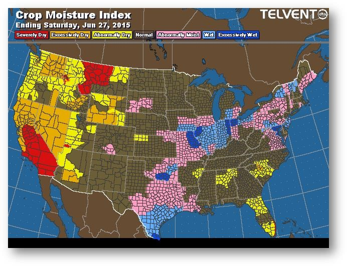 Les marchés des céréales sont mixtes : maïs et blé à la hausse/soja à la baisse. L'évaluation de l'état des cultures a chuté de 3% à 68% comparativement à 75% il y a un an dans la catégorie bon-excellent, ce qui correspond aux attentes du marché. L'état du maïs en Ohio se détériore rapidement et, même si la situation est moins alarmante au Michigan, l'évaluation y recule également de façon importante depuis deux semaines.