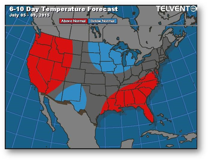 Prévisions de températures pour les 6 à 10 prochains jours