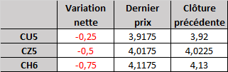 Évolution du prix calculé en fonction du rapport 201 du CME : baisse prévue de