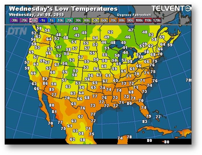 Prévisions des températures les plus basses (degrés Farenheit)