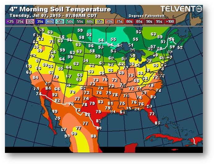 Température du sol en matinée à une profondeur de 4 pouces (degrés Farenheit)