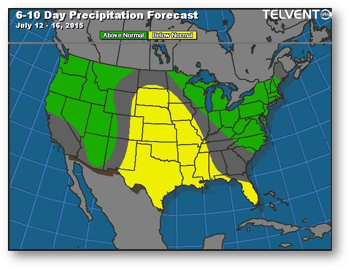 Il y a eu légère amélioration de l'évaluation de l'état des cultures de 68% à 69% dans la catégorie bon-excellent. Des améliorations ont été notées dans les États suivants : Minnesota, Nebraska, Dakota du Sud, Missouri, Ohio, Tennessee et Kentucky. Des baisses ont été attribuées en Illinois, en Indiana, au Michigan et en Iowa. L'apparition des soies a été évaluée à 12% comparativement à 4% la semaine dernière et à une moyenne de 18%. Les exportations ont ralenti à 33 millions de boisseaux alors que la moyenne des dernières semaines était de 42 millions de boisseaux. Le rapport COT n'a été publié que partiellement, ce qui a causé beaucoup de confusion et des faux rapports dans le marché. En fait, la position longue nette est passée de 43 000 à 111 000 contrats - un record hebdomadaire - ce qui s'est traduit par un mouvement de 0,50$ dans le maïs. Le marché garde un oeil sur les conditions météo à l'échelle internationale, particulièrement dans l'ouest de l'Ukraine.