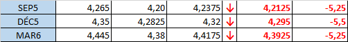 Prix calculé en fonction du rapport 201 du CME hier :