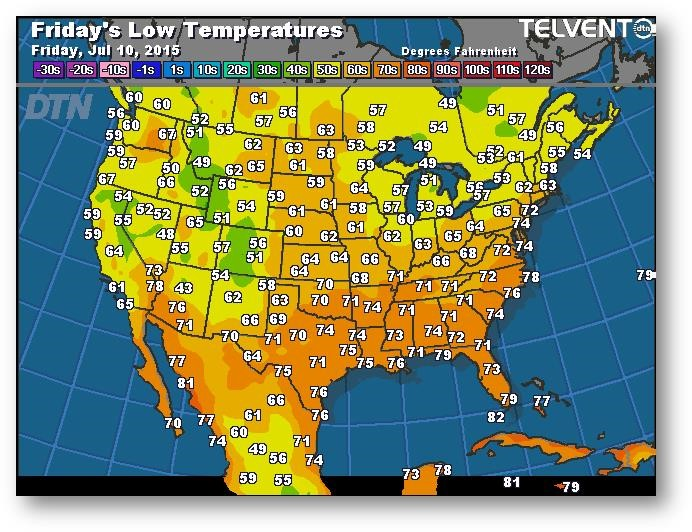 Prévisions des températures les plus basses (degrés Farenheit)