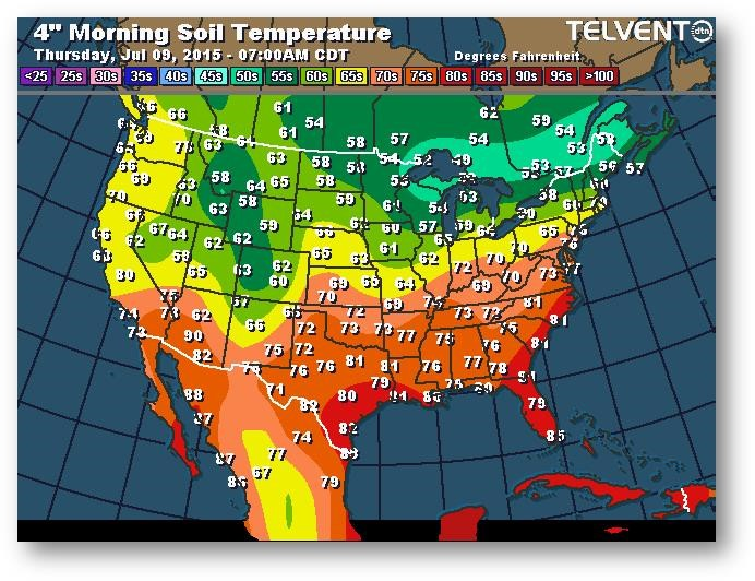 Température du sol en matinée à une profondeur de 4 pouces (degrés Farenheit)