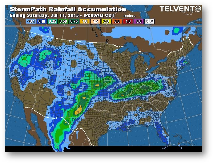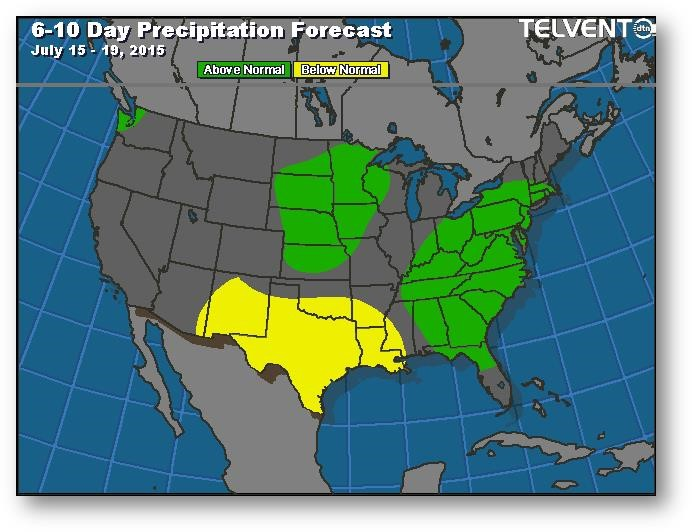 Le marché s'attend à un rendement de 165 boisseaux/acre dans le rapport sur l'état de l'offre et de la demande comparativement à la prévision du USDA de 166,8 en juin. La fourchette s'étend principalement entre 163 et 166,8. L'évaluation du marché pour les stocks de report de la dernière récolte est de 1809 millions de boisseaux (1876 en juin); la fourchette étant de 1726 à 1880. Pour l'instant, les inspecteurs des cultures jugent que l'état du maïs dans l'est des États-Unis est légèrement plus mauvais que prévu alors que c'est le contraire dans l'ouest. Actuellement, il est difficile d'évaluer le rendement global aux États-Unis sous 160 boisseaux par acre.