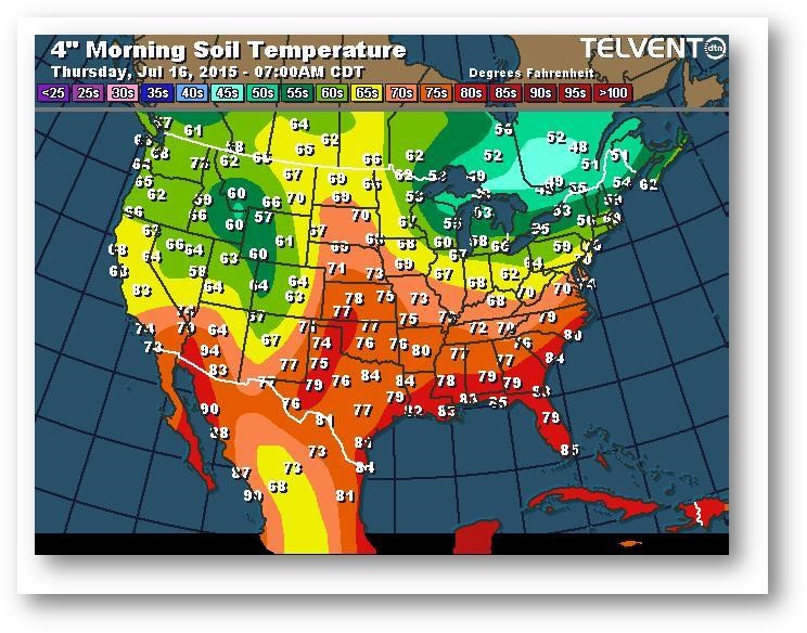Température du sol en matinée à une profondeur de 4 pouces (degrés Farenheit)