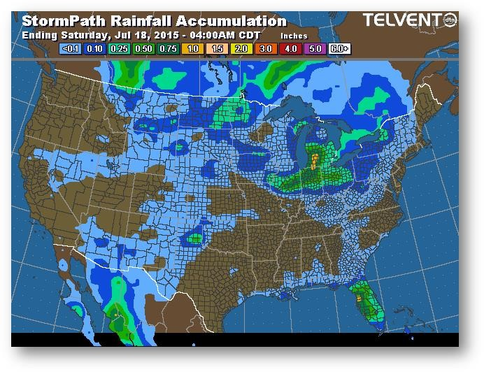 Le marché continue sa progression en dents de scie vu la situation incertaine dans l'est de la Corn Belt et les dommages causés par la pluie en Illinois. Le prix semble tenir compte d'un rendement entre 162 et 164 boisseaux/acre; si plus bas, on s'approche de 5$, si plus haut, on a suffisamment de stocks pour calmer les inquiétudes. Les conditions météo en Europe sont à surveiller. Les valeurs CIF se sont affaiblies. Les exportations de la prochaine récolte sont toujours problématiques, mais le marché se concentre actuellement sur l'offre.