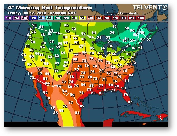 Température du sol en matinée à une profondeur de 4 pouces (degrés Farenheit)