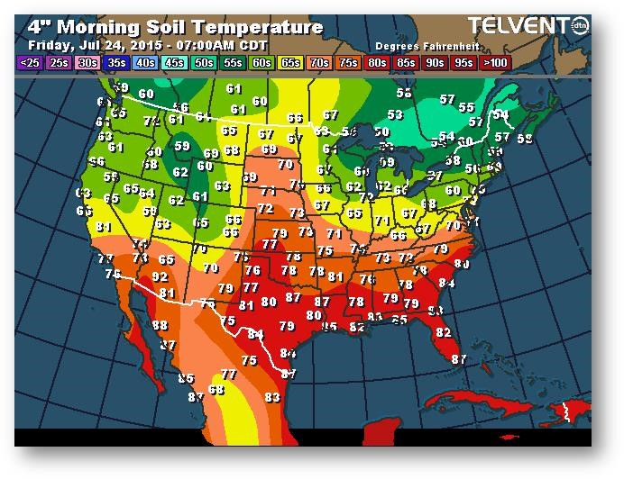 Température du sol en matinée à une profondeur de 4 pouces (degrés Farenheit)