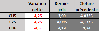 - Le prix du cuivre se dirige vers sa pire semaine depuis janvier.