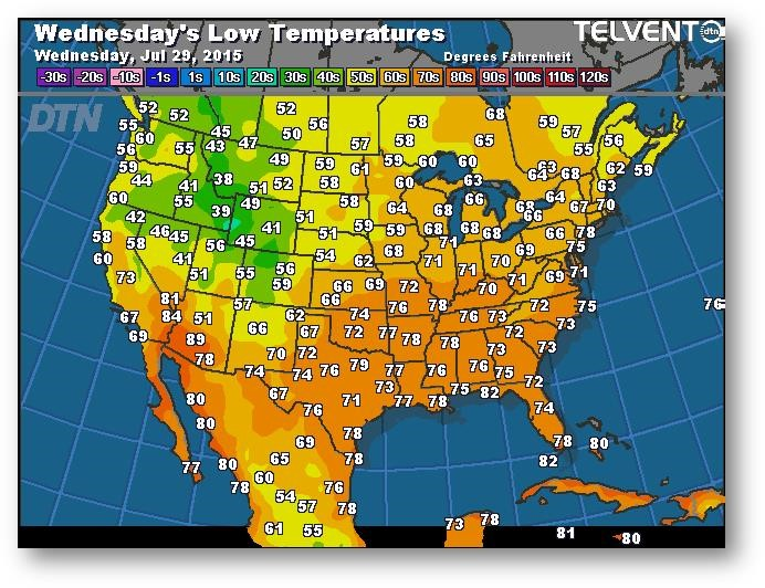 Prévisions des températures les plus basses (degrés Farenheit)