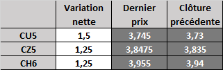 Prix calculé en fonction du rapport 201 du CME hier :