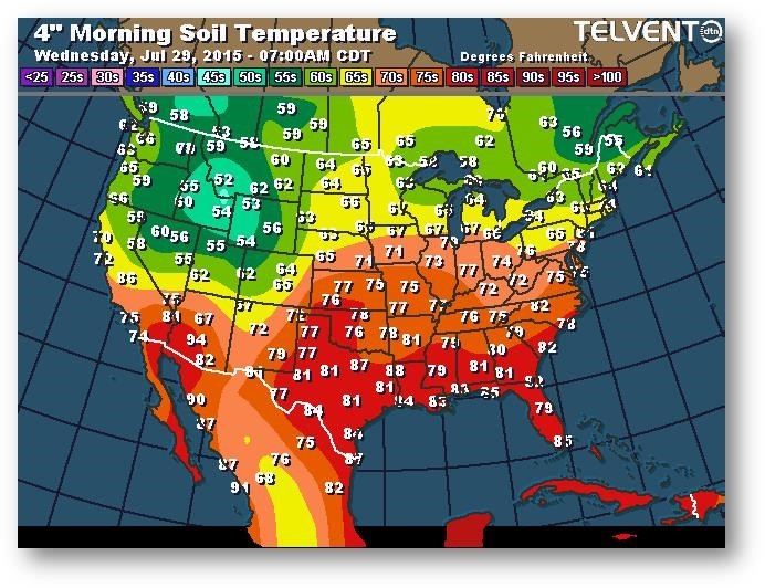 Température du sol en matinée à une profondeur de 4 pouces (degrés Farenheit)