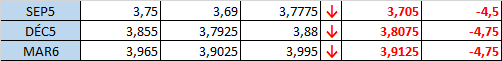 Hier, le maïs a clôturé en force, mais ça s'est vite arrêté au cours de la séance de nuit puisque le prix est maintenant en baisse de 0,04$. La position ouverte a finalement diminué peut-être en raison des utilisateurs finaux qui font leur entrée sur le marché dans le contexte de liquidation. Dans le centre et le sud de la France, les conditions demeurent très chaudes et sèches. Les livraisons du Brésil pour juillet pourraient être un record mensuel; l'Argentine s'approche aussi d'un record pour juillet. Les livraisons américaines ne sont pas élevées et la demande à l'échelle internationale devrait être extrêmement forte pour que ça change.