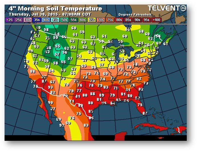 Température du sol en matinée à une profondeur de 4 pouces (degrés Farenheit)