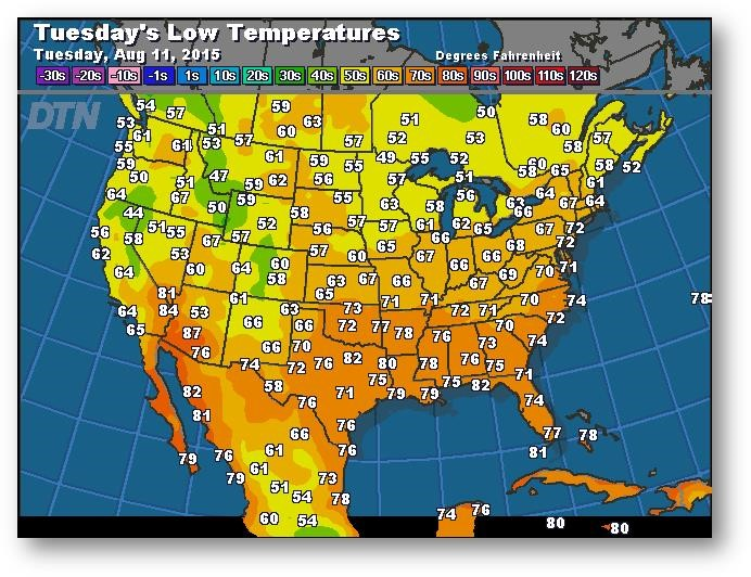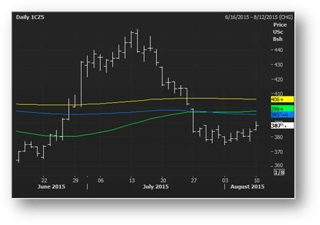 Au cours de la nuit, les prix du maïs ont suivi ceux du soja à la hausse. Pas beaucoup de nouvelles fraîches dans le marché du maïs dernièrement, mais les prix semblent avoir trouvé un creux temporaire. Les températures élevées et le manque d'humidité ont sévèrement endommagé les cultures en Europe depuis la fin juillet. L'évaluation de la progression des cultures sera publiée ce soir, suivie du rapport du USDA mercredi. Les estimations de la fourchette de rendement national du USDA varient entre 160 et 167 boisseaux par acre. Les positions nettes des fonds gérés ont diminué de 80 000 contrats la semaine dernière; le marché attendait cette diminution. Il faudra voir ce qui se passera de ce côté d'ici mercredi.