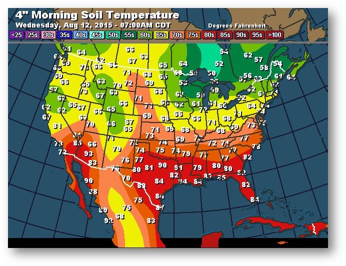 Température du sol en matinée à une profondeur de 4 pouces (degrés Farenheit)