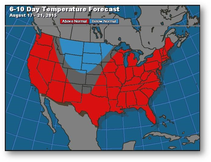 Prévisions de températures pour les 6 à 10 prochains jours
