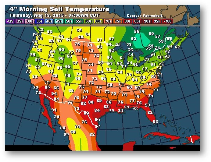 Température du sol en matinée à une profondeur de 4 pouces (degrés Farenheit)