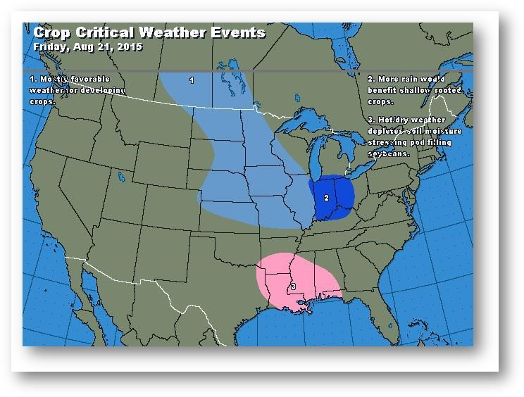Le marché du maïs poursuit sa hausse puisque le crop tour ProFarmer ajoute de l'inquiétude et des questionnements. Le rendement en Illinois est évalué à 171,6 boisseaux/acre (USDA 172). Les données recueillies s'approchent de celles du USDA à mesure que le tour se déplace vers l'ouest; dans l'est, les estimations étaient très différentes de celles du USDA. Les principaux secteurs de culture ont reçu des précipitations très attendues au cours de la dernière semaine. Les agriculteurs retiennent leur maïs jusqu'à ce qu'ils soient obligés de s'en défaire pour des raisons logistiques de récolte.