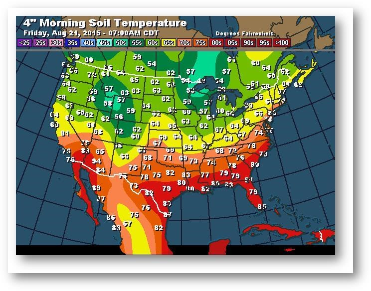 Température du sol en matinée à une profondeur de 4 pouces (degrés Farenheit)
