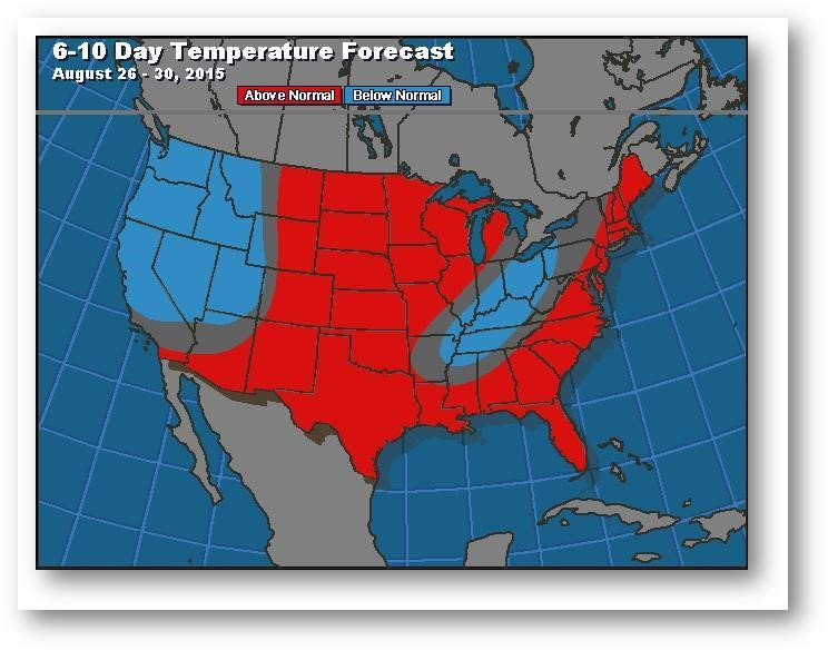 Prévisions de températures pour les 6 à 10 prochains jours
