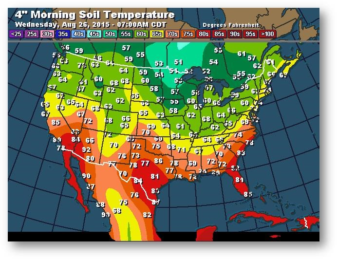Température du sol en matinée à une profondeur de 4 pouces (degrés Farenheit)
