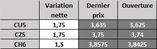 Prix calculé en fonction du rapport 201 du CME hier :