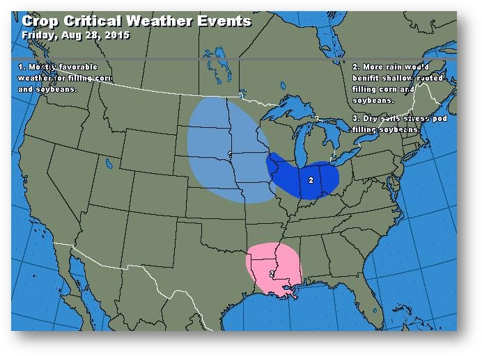 Les prix se sont légèrement redressés dans une fourchette plutôt neutre. Le marché a été supporté par une hausse dans le soja et les marchés de l'énergie, mais contenu par la baisse dans le blé. Les ventes à l'exportation de la nouvelle récolte ont été de 987 000 tonnes, ce qui correspond aux attentes les plus élevées. Les engagements totaux tirent toujours de la patte comparativement à l'année dernière et à la moyenne des trois dernières années. Le Brésil reste en tête sur les marchés de l'exportation. Les débats se poursuivent au sujet du rendement aux États-Unis; nombreux sont ceux qui croient encore que le USDA a exagéré sa prévision à 168,8 boisseaux/acre. FC Stone publiera son estimation le 1er septembre.