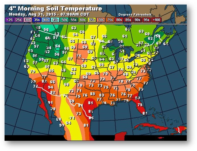 Température du sol en matinée à une profondeur de 4 pouces (degrés Farenheit)