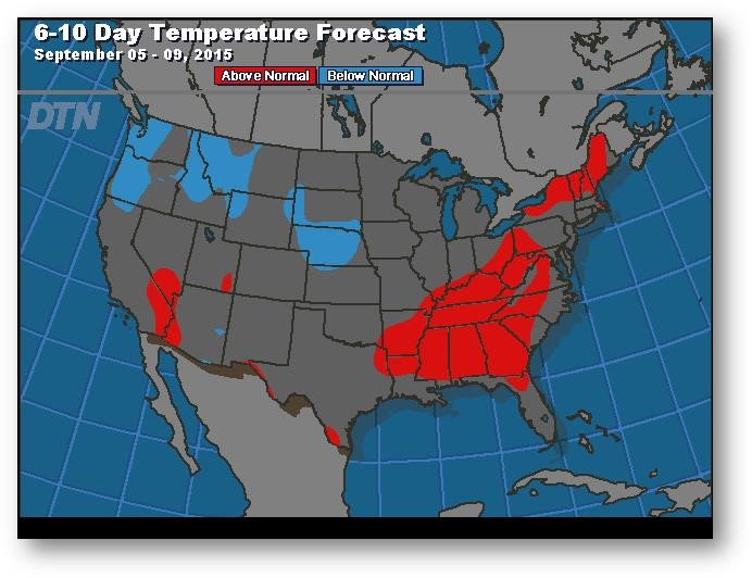 La semaine dernière, les prix du maïs sont restés à l'intérieur d'une fourchette étroite malgré l'agitation dans les marchés financiers mondiaux. Il semble que les prix se dirigent vers un test de 3,90-4,00$, mais ils sont retenus par la faiblesse dans la blé alors que le dollar américain reprend du poil de la bête. De nombreux analystes considèrent toujours que l'évaluation du rendement du USDA à 168,8 boisseaux/acre est trop élevée. Les estimations des cultures par les firmes privées débuteront cette semaine; FC Stone donnera la coup d'envoi après la clôture mardi. Le temps chaud et sec prévu pour les prochains 7 à 10 jours accélérera la maturation dans l'est de la Corn Belt. Le rapport COT a indiqué une position longue de 80 000 contrats en date du 25 août, ce qui représente une augmentation de 9000 contrats par rapport à la semaine précédente. Si le contrat de décembre (CZ5) clôture sous 3,8125$, ce sera le deuxième mois consécutif de recul.