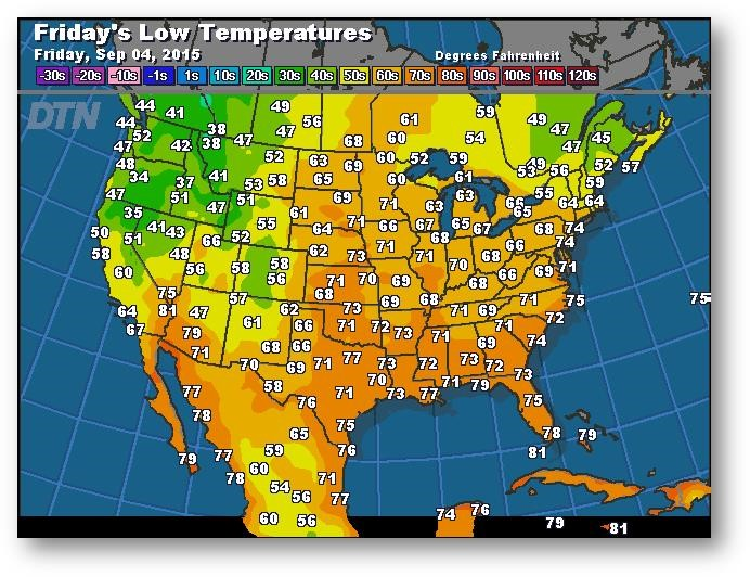 Prévisions des températures les plus basses (degrés Farenheit)