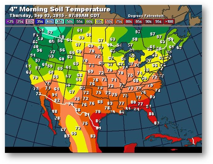 Température du sol en matinée à une profondeur de 4 pouces (degrés Farenheit)