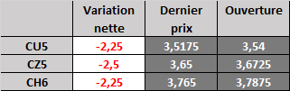 Évolution du prix calculé en fonction du rapport 201 du CME : baisse prévue de