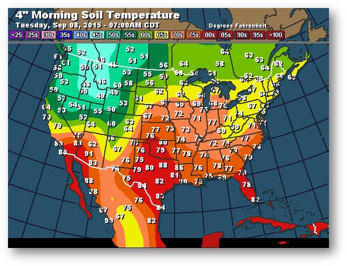 Température du sol en matinée à une profondeur de 4 pouces (degrés Farenheit)
