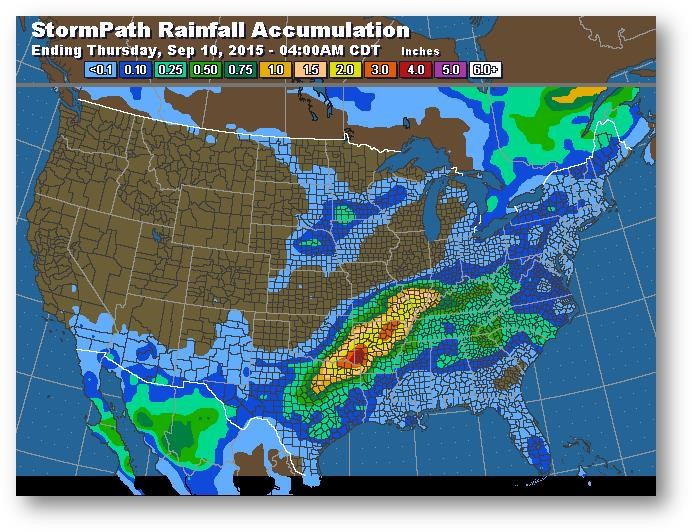 Trajectoire de tempête – Accumulation de précipitations (pouces)