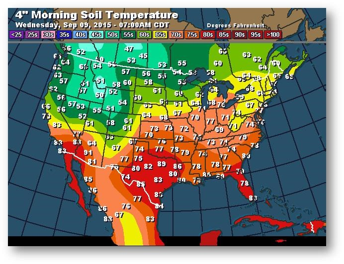 Température du sol en matinée à une profondeur de 4 pouces (degrés Farenheit)