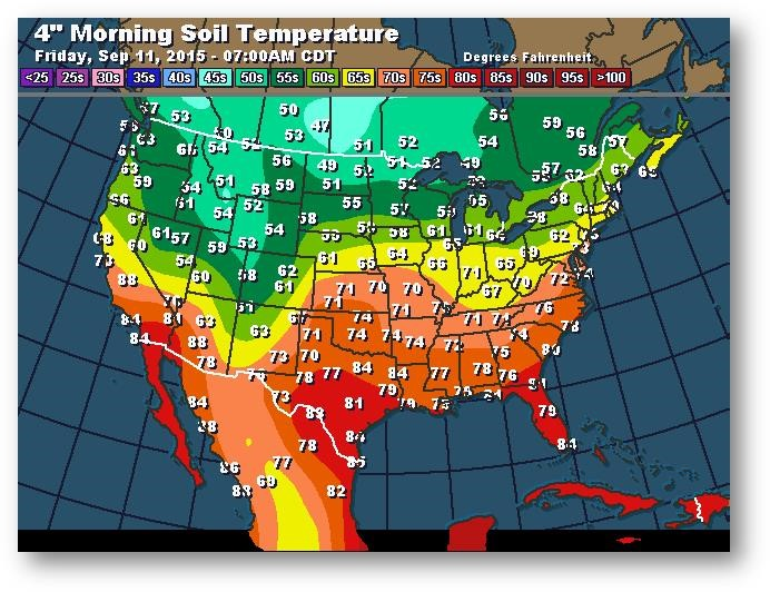 Température du sol en matinée à une profondeur de 4 pouces (degrés Farenheit)