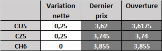 Évolution du prix calculé en fonction du rapport 201 du CME : baisse prévue de