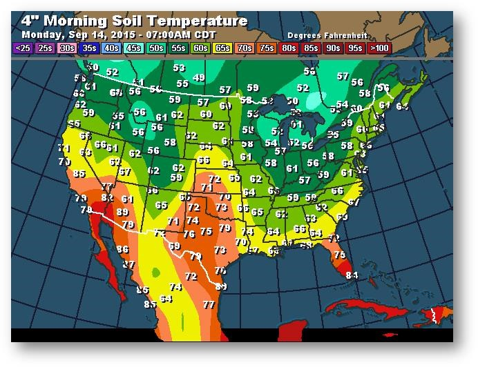 Température du sol en matinée à une profondeur de 4 pouces (degrés Farenheit)