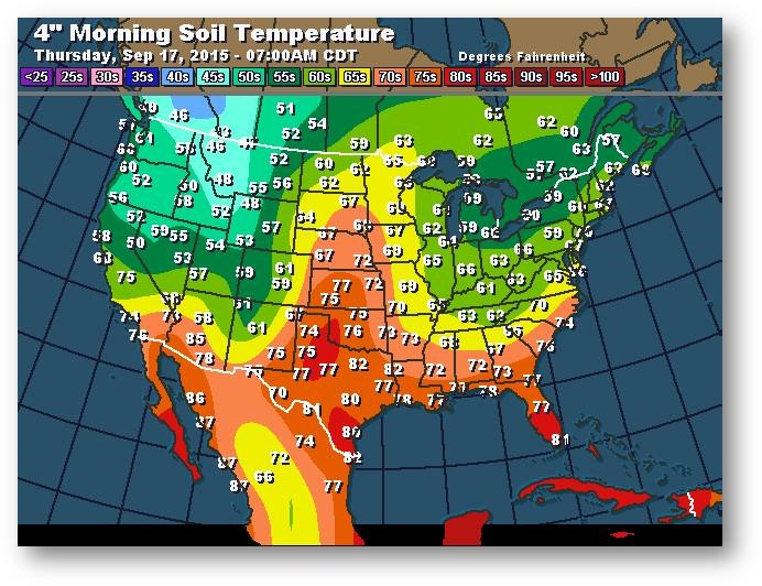 Température du sol en matinée à une profondeur de 4 pouces (degrés Farenheit)