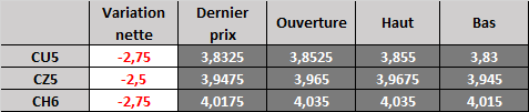 Contrat à terme du maïs à 6 h HNC : en baisse