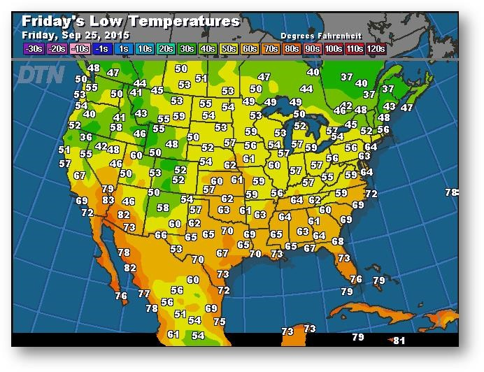Prévisions des températures les plus basses (degrés Farenheit)