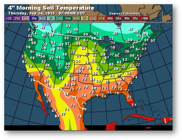 Température du sol en matinée à une profondeur de 4 pouces (degrés Farenheit)